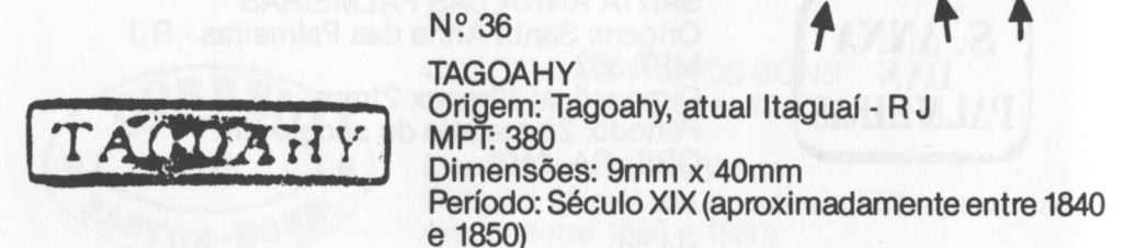 Nova Monteiro (Administrações e Agencias Postaes do Brasil Imperio, in Brasil Filatelico/RJ, 1934-5; Reprint SPP 1994-1999) und Reinhold Koester (Carimbologia XXXIII) sind sich darüber einig, dass es dort seit Mai 1829 ein Postamt gab. Der erste lokale Poststempel ist auch bisher der einzige mit dieser Ortsbezeichnung. TRJ-1600a wurde bereits durch Cicero A. Almeida unter Nr. 380 in Carimbos Postais – século XIX (Rio de Janeiro, 1989) vorgestellt: