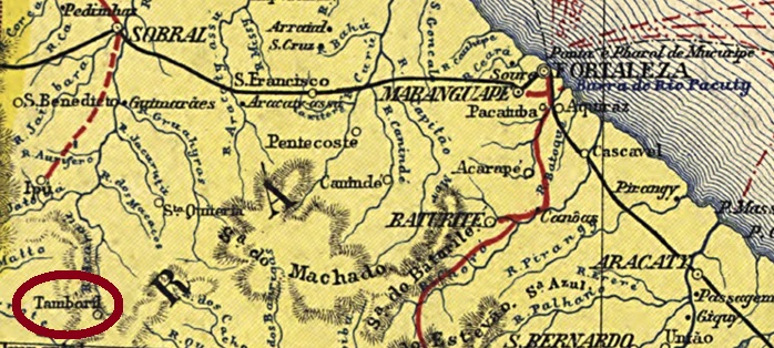 Nova Monteiro schreibt in Administrações e Agencias Postaes do Brasil Imperio (Brasil Filatelico/RJ, 1934-5; Reprint SPP 1994-1999), dass es dort seit August 1866 ein Postamt gab. Der bisher älteste Poststempel ist TCE-0335b (Samml. José A. Junges): ein Doppelkreis mit der Inschrift TAMBORIL oben. Die Daten in der Mitte wurden für den Zeitraum 1889-1908 gefunden.
