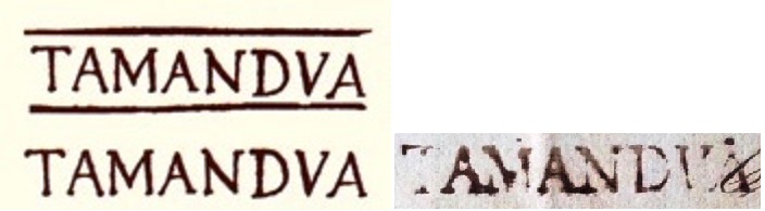 Der Nachfolgestempel TMG-3500c (Samml. José A. Junges) ist ein französischer Typus mit der obigen Inschrift TAMANDUÁ und dem typischen Stern zwischen Klammern unten. Daten in der Mitte von 1883 bis 1896.