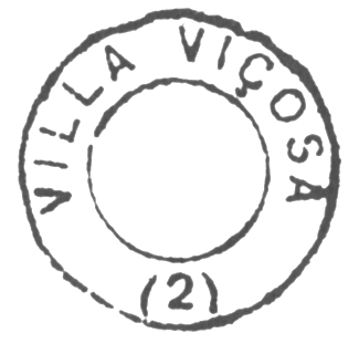 Wie im Verzeichnis der kaiserlichen Postämter (Tabella das Agencias do Correio do Imperio, Rio de Janeiro, 1885) zu lesen ist, gab es dort seit 1870 ein Postamt. Der älteste Poststempel ist der französische Typus VBA-0765a (Samml. José A. Junges), der bis mindestens 1876 verwendet wurde: die Inschrift oben lautet VIÇOZA, unten ist der kleine Stern zwischen Klammern zu sehen. Ihm folgte VBA-0845a (Samml. Dieter Kerkhoff): in diesem Doppelkreis lautet die obere Inschrift VILLA VIÇOSA, unten ist eine (I), und die Daten in Inneren gehen von 1880 bis 1894.