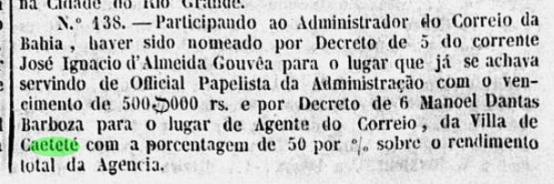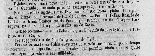 Das örtliche Postamt wurde im Dezember 1829 ins Leben gerufen, wie sowohl Nova Monteiro in Administrações e Agencias Postaes do Brasil Imperio (Brasil Filatelico/RJ, 1934-5; Reprint SPP 1994-1999) als auch das Verzeichnis der kaiserlichen Postämter (Tabella das Agencias do Correio do Imperio, Rio de Janeiro, 1885) übereinstimmend registrieren. Der älteste Poststempel VRJ-2360a war zumindest 1843 in Gebrauch und wurde bereits im RHM-Katalog vorgestellt: