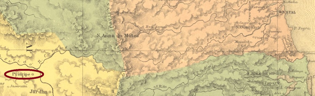 The former freguesia of Príncipe already existed in the 18th century and was situated on the south bank of the river Seridó, 280 km west of the future provincial capital Natal. However, the freguesia still belonged to the Vila of Piancó, which in turn was in Parahyba. Only when it was promoted as Vila Nova do Principe in July 1788 did it change to the Capitania of Rio Grande do Norte. This was followed by its designation as a town in December 1868. After the end of the Empire, the town’s name changed twice in 1890: in February to Seridó and in July to Caicó, which is still current today.