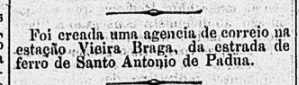 Two creation years were found for the local post office. First in April 1818, as both Nova Monteiro in Administrações e Agencias Postaes do Brasil Imperio (Brasil Filatelico/RJ, 1934-5; Reprint SPP 1994-1999) and the Directory of Imperial Post Offices (Tabella das Agencias do Correio do Imperio, Rio de Janeiro, 1885) record. Then again in 1863, as Reinhold Koester writes in Carimbologia XXXII. So far, no imperial postmark could be assigned with certainty to this locality.