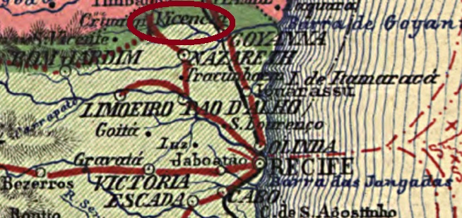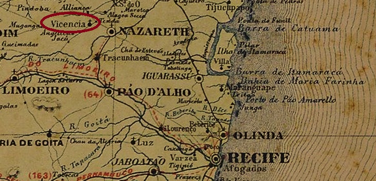 The Freguesia of Sant’Anna da Vicencia was founded in June 1879 near Nazareth, located on the south bank of the Sirgi River, 90 km northwest of Recife, the provincial capital. In May 1891 it was promoted to Vila, but four years later it was demoted to a district of Nazareth. It was not until September 1928 that Vicência (as it is written today) became an independent Município again.