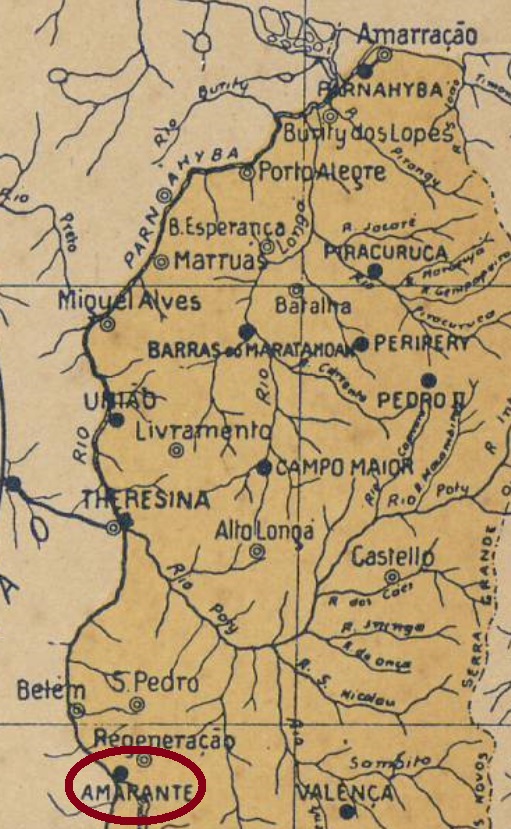 The local agency was founded in July 1830, as Nova Monteiro states in Administrações e Agencias Postaes do Brasil Imperio (Brasil Filatelico/RJ, 1934-5; Reprint SPP 1994-1999). With the village separation and the move to Amarante, the agency was probably closed, as it is not included in the Postal Guide of 1880 or in the Imperial Mail Register (Tabella das Agencias do Correio do Imperio) of 1885. It may have reopened in 1885 because a postal line was created this year between Amarante and Regeneração: