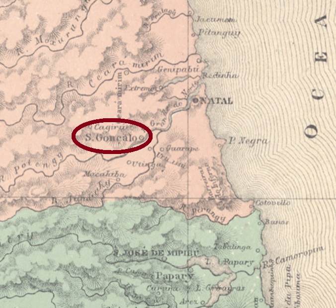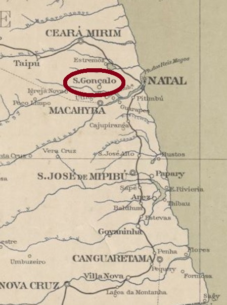 Located in the province of Rio Grande do Norte, about 20 km west of the capital Natal, this São Gonçalo has a very eventful history. It rose to a municipality four times: in April 1833, then in 1874, 1890 and most recently in December 1958. And in between it descended three times to a district, either of Natal or, most recently, of Macaíba. Now stability has been restored, and the municipality is nowadays called São Gonçalo do Amarante.
