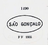 Der nächste Stempel ist SMG-2330a (Samml. José A. Junges): ein Doppelkreis mit den Inschriften S. GONÇALO DE SAPUCAHY oben und (MINAS) unten, wobei das Wort DE kleinere Buchstaben als die anderen hat. Die Daten in der Mitte gehen von ca. 1882 bis 1893. SMG-2330b (Samml. José Renato C. de Souza) ist fast identisch mit dem Vorgänger, aber hier sind die Buchstaben von DE gleich groß wie die anderen. Das einzig gefundene Exemplar hat ein Datum aus 1885 in der Mitte.