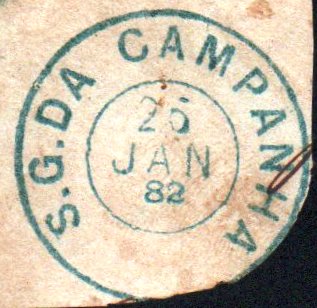 A single imperial postmark was found under this place name: SPI-0200a (Samml. Jorge L. Pedreira) consists of a double circle with the inscription S.G. DA BATALHA above. The only known copy has a date from 1881 at the centre. And if the agency was in operation in 1881, an opening date from 1882 is unlikely.