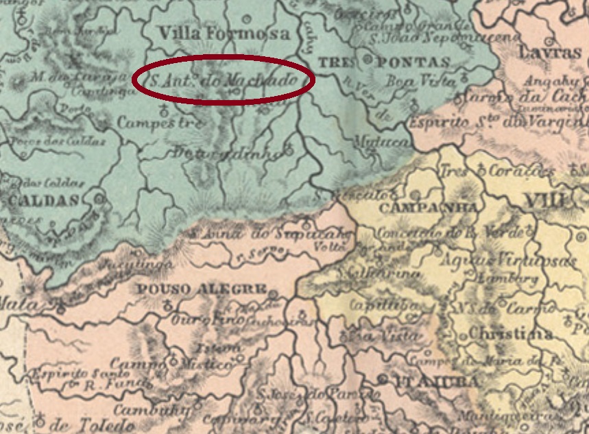 Sowohl Nova Monteiro (Administrações e Agencias Postaes do Brasil Imperio, in Brasil Filatelico/RJ, 1934-5; Reprint SPP 1994-1999) als auch Paul Sobrinho (História Postal de Minas Gerais, Belo Horizonte, 1997) sind sich darüber einig, dass das örtliche Postamt im Juli 1864 entstanden ist. Zwei Stempel aus der Kaiserzeit waren zu finden, die allerdings wohl nicht die ältesten sind. SMG-3035b (Samml. José A. Junges) hat einen Doppelkreis mit der Inschrift S.A. DO MACHADO. Das einzig vorhandene Exemplar ist mit 1886 in der Mitte datiert. SMG-3035c (Samml. José A. Junges) trägt zwischen den Kreisen die Inschriften S. ANTo. DO MACHADO oben und (MINAS) unten. Die Daten in der Mitte entstammen dem Zeitraum 1889-1906.