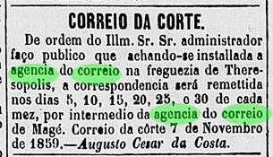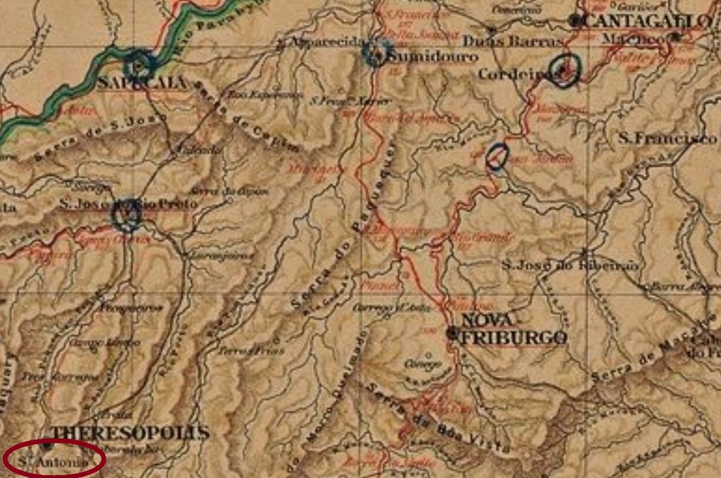 Things got more complicated in July 1862, when according to Paulo Novaes (agenciaspostais.com.br) another agency opened in Santo Antonio do Paquequer. This one closed “ca. 1864” (P. Novaes), but reopened in October 1874, under the name of Alto de Theresopolis, as reported by the Rio press: