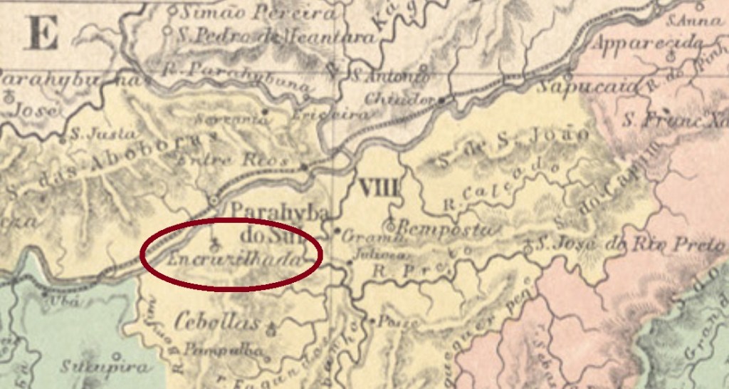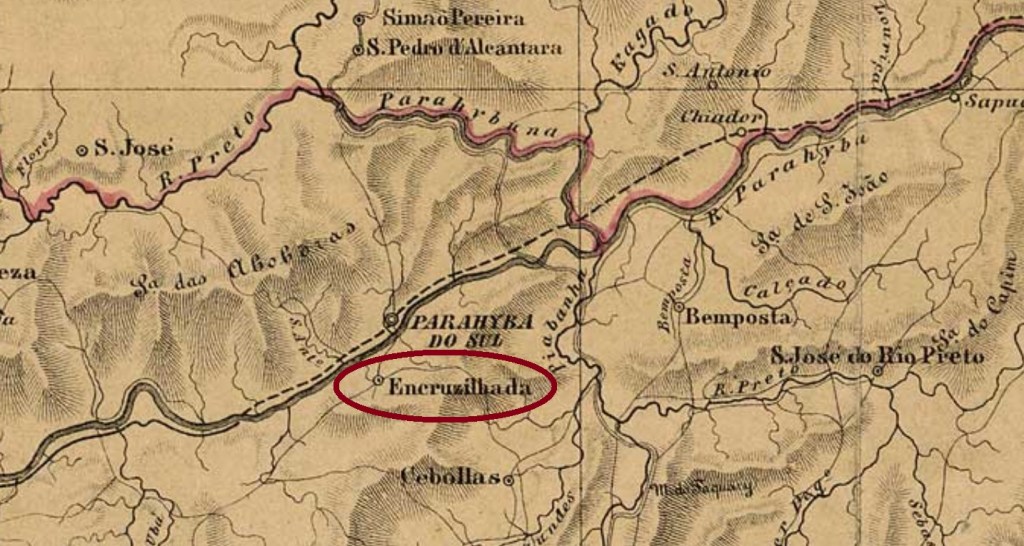 The district of Santo Antonio dos Pobres da Encruzilhada (= St. Anthony of the Poor at the Road Crossing) was established in October 1855 in the municipality of Paraíba do Sul, on the south bank of the homonymous river, round 150 km north of the imperial capital Rio de Janeiro. This adminstrative status has remained until our days, although the toponym has changed twice since then: in December 1938 to Encruzilhada, and five years later, to Salutaris.