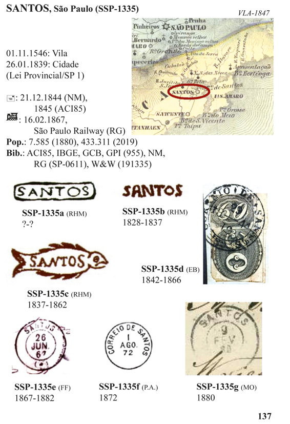 Was ist hier neu? Die Bildqualität bei Stempeln und Landkarten konnte durch reifere Technik und geeignete Quellen verbessert werden. Einige „stummen“ Stempel werden vorgestellt, wenn ihre Zuordnung zweifelsfrei ist. Um die Suche zu vereinfachen, gibt es kleine Vergleichstafeln mit Stempeln von gleichnamigen Orten aus verschiedenen Provinzen (z.B. Santa Cruz, Santo Amaro).