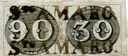 Three early cancels could be identified. SRS-0415a (Coll. José A. Junges) was used in the period 1881-1889 in black and blue. It has a double circle with the inscription S. ANGELO above and the date at the centre. The following cancels, SRS-0415b and SRS-0415c (both examples from the J.A. Junges collection), have the same features: a double circle with the inscriptions SANTO ANGELO above and (S. PEDRO DO SUL) below. with dates at the centre. In the former, used 1892, the letters are narrow/high and there are gaps between inscriptions, whereas in the latter of 1893 the letters are wide, without gap between inscriptions.