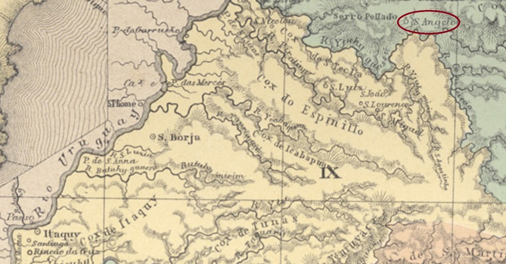 The territory of the villa of Santo Angelo was originally distributed between the muncipalities of Santa Cruz and São Borja, in the Mission region of the southern province São Pedro do Rio Grande, over 400 km northwest of the capital Porto Alegre. In March 1873 it ascended to a villa in own municipality.