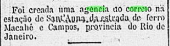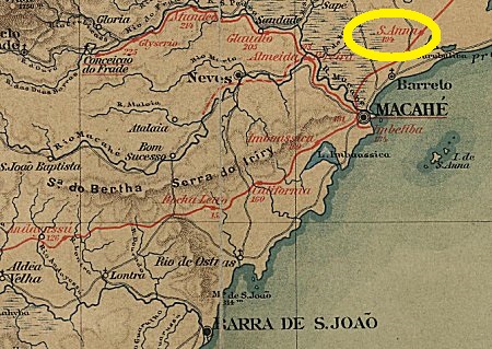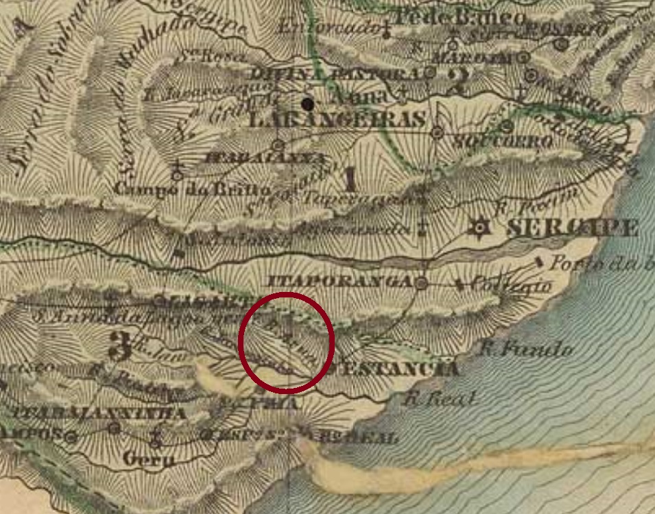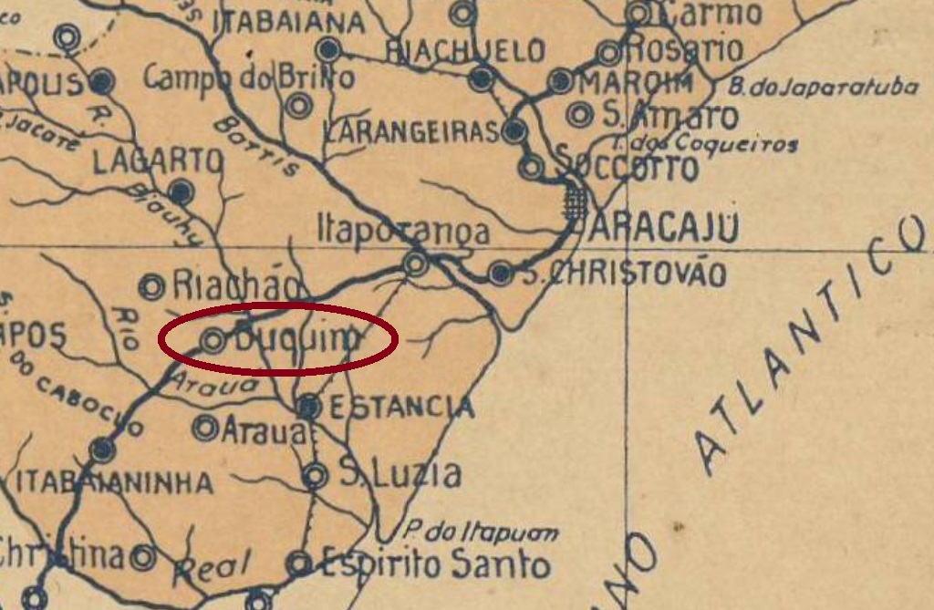 Sant’Anna do Boquim was the name of the village created in March 1870 after the relocation of Lagoa Vermelha, whose history was already told by Koester (Carimbologia VI and XXVI). The name Boquim is allegedly derivated from Boquinha da Mata (Little mouth of the forest) and refers to the woods that existed in this region, situated almost 90 km southwest of the province capital Aracaju. In October 1926 it emancipated politically and ascended to a town.