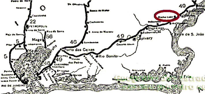 The Rocha Leão train station in the Coastal Line of the Estrada de Ferro Leopoldina was inaugurated in November 1888 near Rio das Ostras (RRJ-0845). Some sources state the original station name was União, but this could not be confirmed. The railway belonged to the E.F. Leopoldina until 1975. From then on until 1996 it was run by the Rede Ferroviária Federal S.A. Now the station house serves as a museum and cultural centre (see image below), and Rocha Leão is a district of Rio das Ostras.