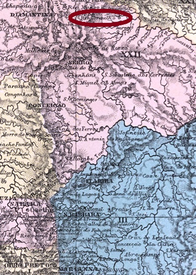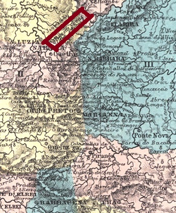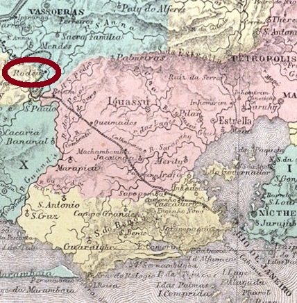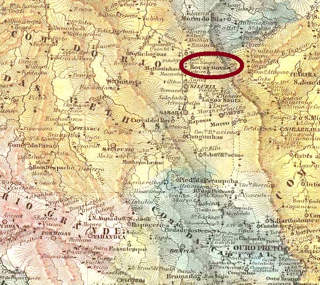 The district of Nossa Senhora da Madre de Deus de Roças Novas (= Our Lady Mother of God of New Fields) was founded in April 1841 in the municipality of Caeté, over 120 km north of the early province capital Ouro Preto. Surprinsingly, it has remained in this status and under the same name until today, contrary to almost all other researched localities.