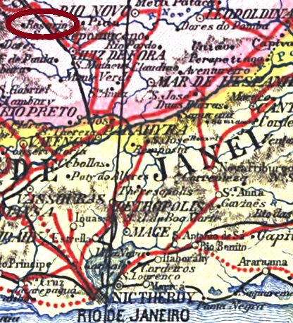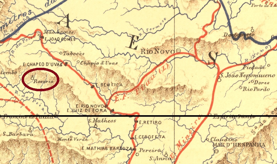 According to Paula Sobrinho (História Postal de Minas Gerais, Belo Horizonte, 1997), the local post office was created in August 1881. A sole cancel from the Empire is known: RMG-2195a (Coll. José A. Junges) is found in black and green dated between 1885 and 1897, and has the inscriptions ROSARIO above and (JUIZ DE FORA) below, with the date in the centre.