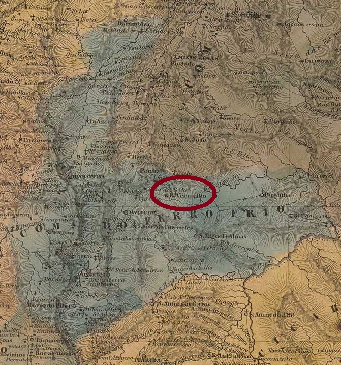 After three Rio Verde (=Green River) there are two Rio Vermelho (=Red River). The first one was the district of Nossa Senhora da Penha do Rio Vermelho, founded in 1817 in the municipality of Sabará, over 300 km north of the ancient province capital Ouro Preto in Minas Gerais. In March 1838 it passed to the municipality of Serro, and in December 1938 it was given an own municipality with the town status.