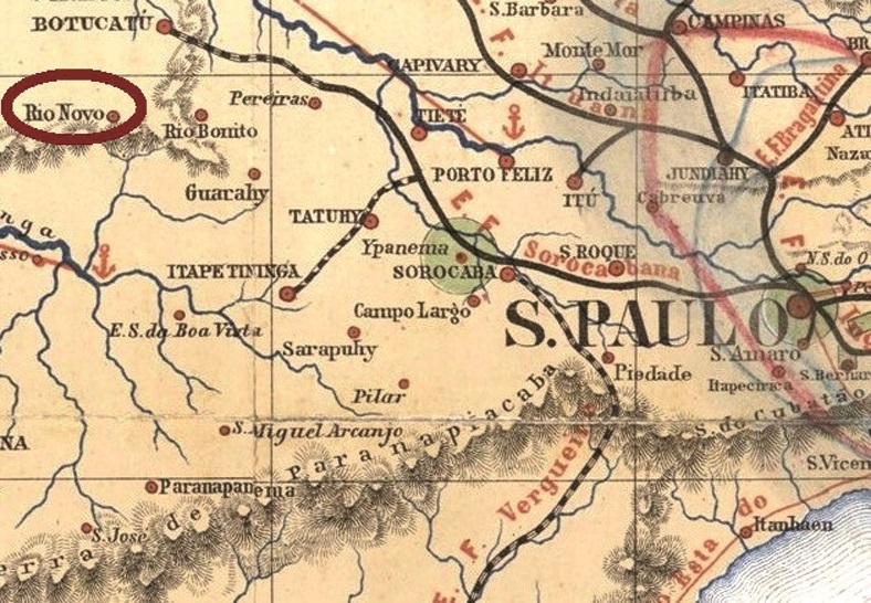 Im brasilianischen Kaiserreich gab es mindestens vier Ortschaften in Minas Gerais und weitere zwei in der Provinz São Paulo, die RIO DO PEIXE (=Fisch-Fluss, RdP) in ihren Namen trugen: Espírito Santo do RdP und Penha do RdP in São Paulo; Nossa Senhora das Dores do RdP, Nossa Senhora das Necessidades do RdP (identisch mit RdP de Entre Rios, siehe RMG-3812), Santo Antonio do RdP und São Domingos de RdP, in Minas Gerais. Wir nehmen an, dass das hier gesuchte Postamt das älteste in dieser Liste sein soll, um weitere Bezeichnungen auf dem Stempel überflüssig zu machen. Damit wären wir auf Nossa Senhora das Dores do Rio do Peixe gekommen. Dieser war ab Juni 1859 ein Distrikt vom Município von Barbacena, der im Oktober 1881 zur Villa do Rio do Peixe mit Verwaltungsautonomie aufstieg. Drei Jahre später erhielt er den heutigen Namen Lima Duarte.