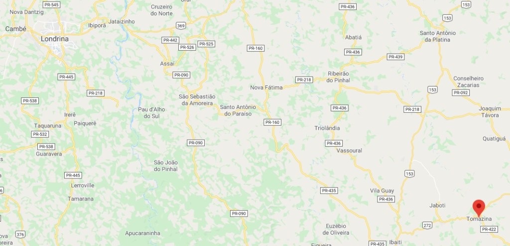 After Ribeira (Iguape, RSP-1076) and Ribeirão Preto (Faxina, RSP-1097), this is the third imperial post office discovered after the release of Carimbologia (Q-R) six months ago. Rio das Cinzas, eventually also called Rio da Cinza (= Ash River), was made in April 1879 a district of the municipality of São José da Boa Vista, the former S. José da Christandade. According to the Brazilian Institute of Geography and Statistics (IBGE), the founder was a major from Minas Gerais, called Joaquim Thomaz Pereira da Silva, who in 1865 bought a big land extension around the Rio das Cinzas, an affluent to the Paranapanema River, some 300 km northwest of Curitiba. Two years later, he started the settlements, and when the locality ascended to a freguesia in 1882, it acquired officially his name. Since May 1889 it is the municipality of Tomazina in Paraná.